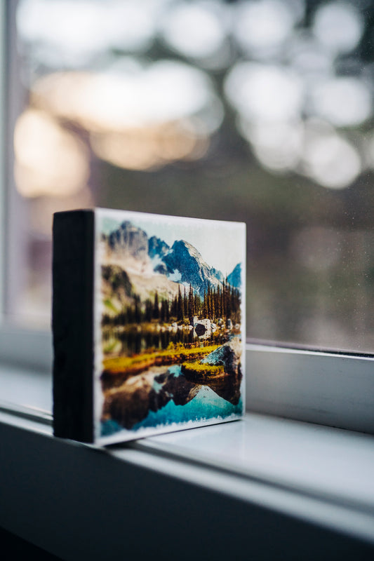 Alpine Lake & Reflections<br> 5x5" Signature Glossy Art Block <br> New Pine Wood Edges