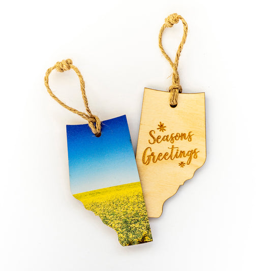 Alberta Wooden Holiday Ornament Seasons Greetings Canola Field in Bloom