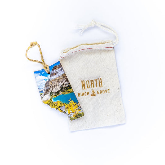 Alberta Wooden Holiday Ornament Seasons Greetings Larch Trees in Autumn