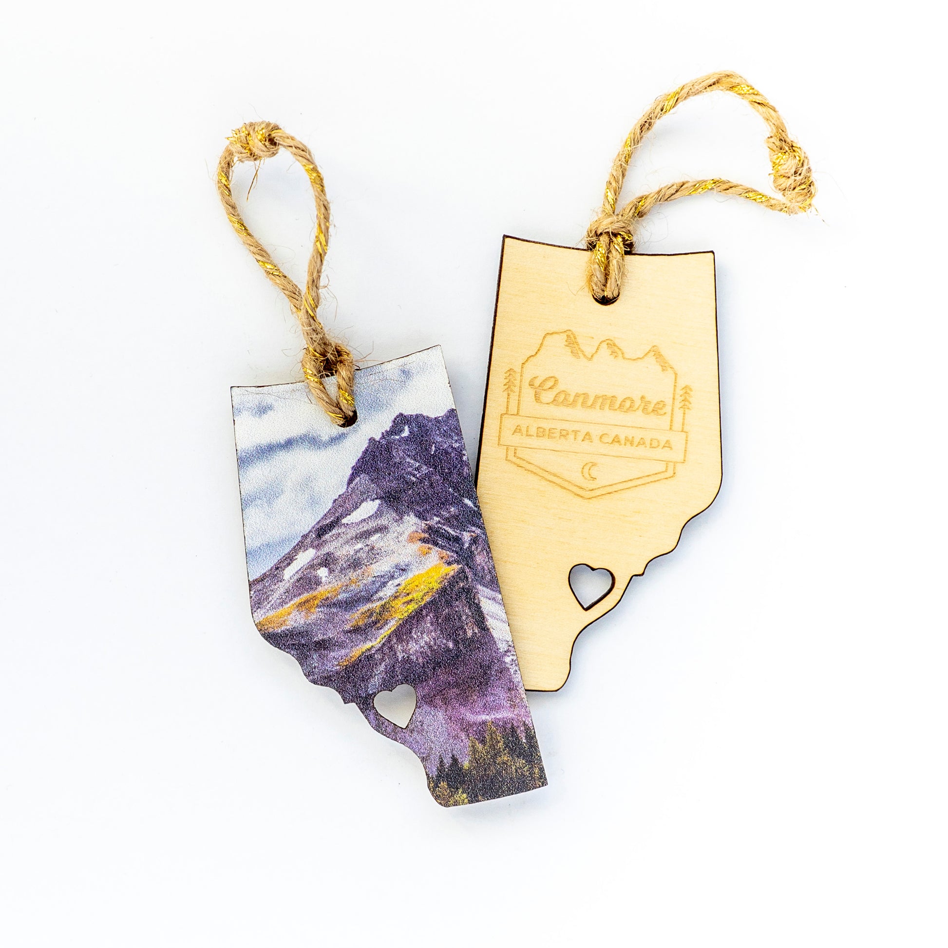 Adorno navideño de madera de Alberta Canmore Alberta Canadá Montañas Rocosas en otoño