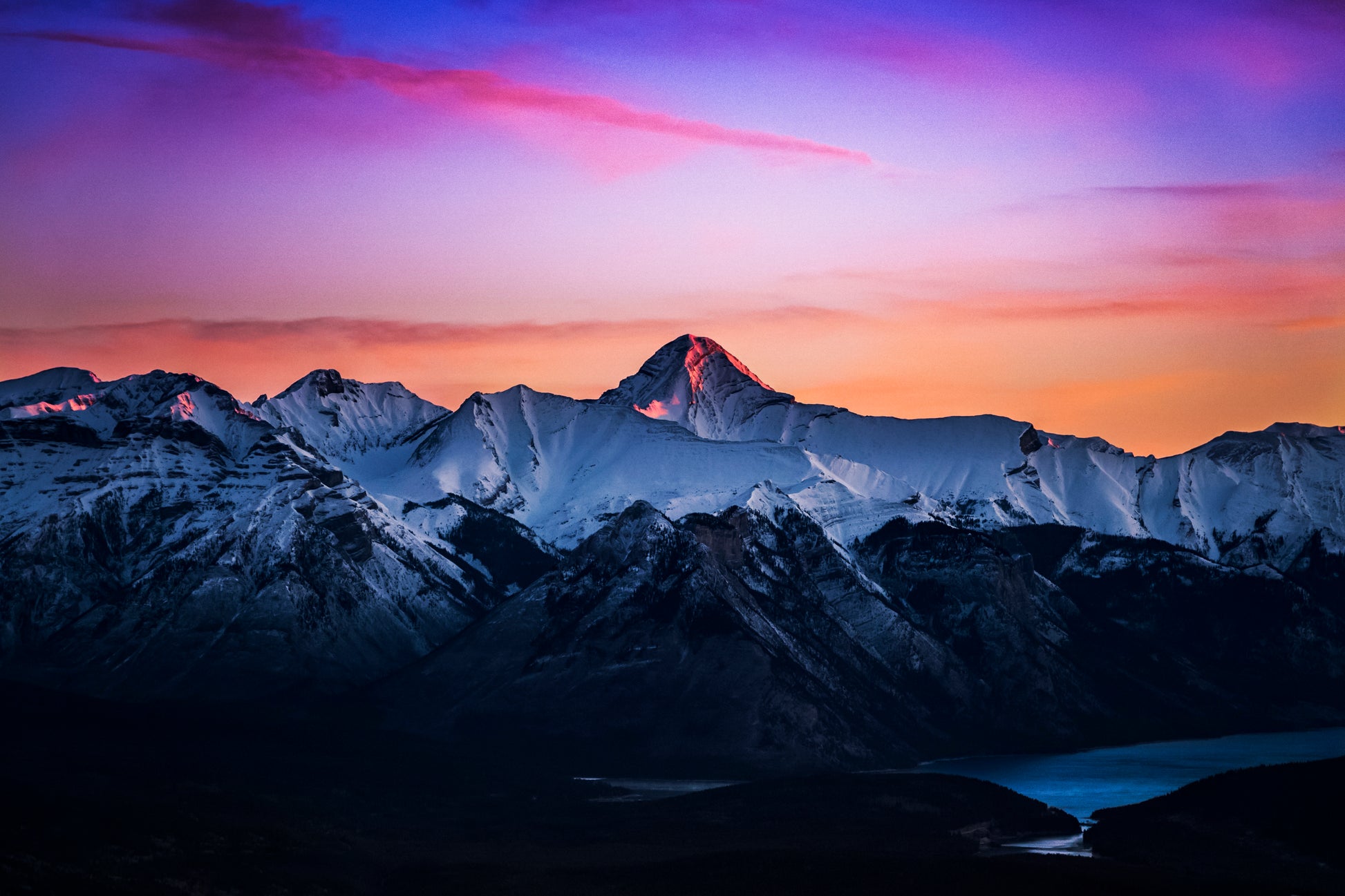 I created this photograph at sunrise in winter of Lake Minnewanka and Mt Aylmer.