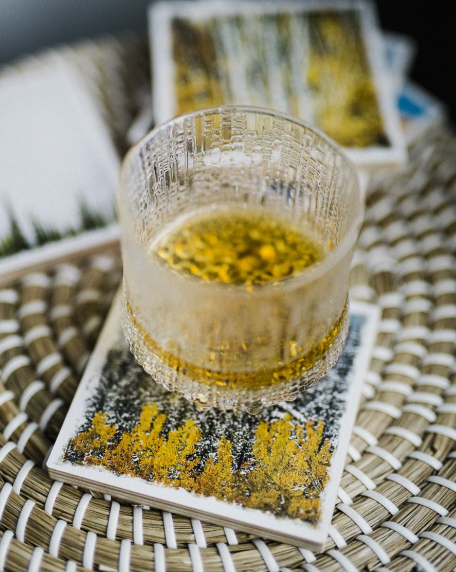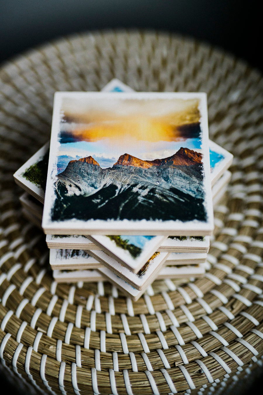 Coasters are designed by North Birch Grove. Artwork is printed onto wood, cut + finished in Calgary Alberta Canada by our print partners + NBG.